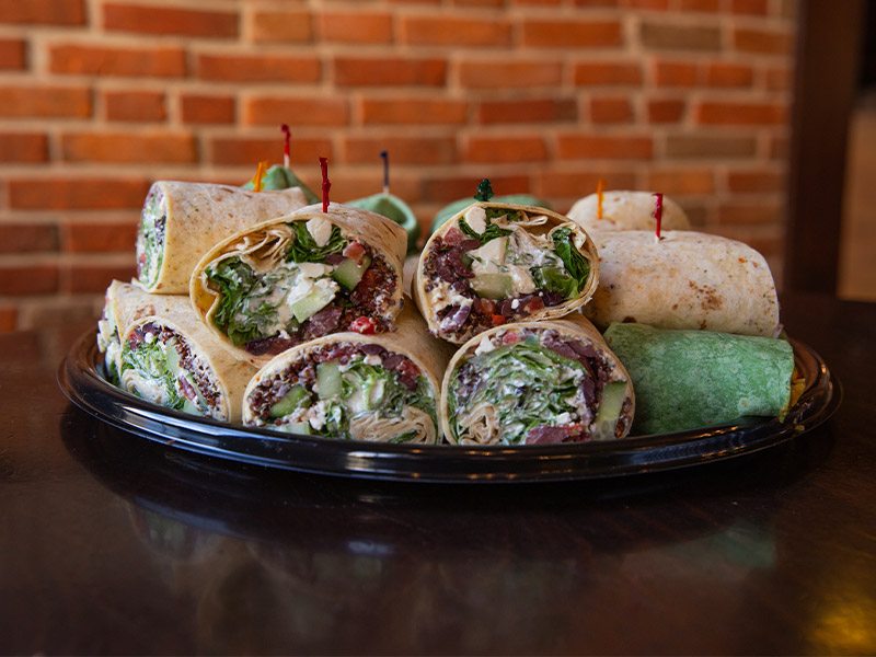 Yes. You can substitute gluten-free crackers in our Mediterranean Platter for an additional $20. Gluten-free bread is available on our sandwich platter for an additional $1 per sandwich. Our wings are also gluten-free with certain sauces. Additional platters can be modified to meet gluten-free requirements.